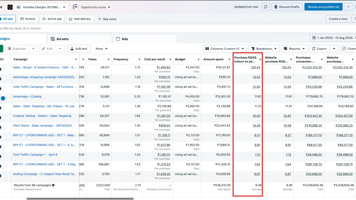Multiple seasonal & CBO campaigns achieving 5X–56X ROAS